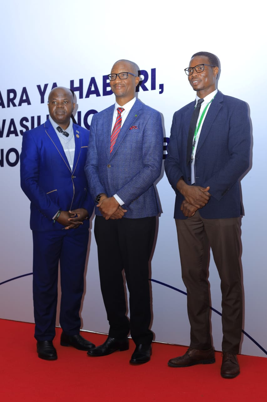 Raisi wa PRST Bwn. Assah Mwambene (kushoto) wakiwa katika picha ya pamoja na Mkurugenzi Mtendaji wa Mwananchi Communication Bwn. Bakari Machumu (katikati). Kulia ni Bwn. Ndege Makura